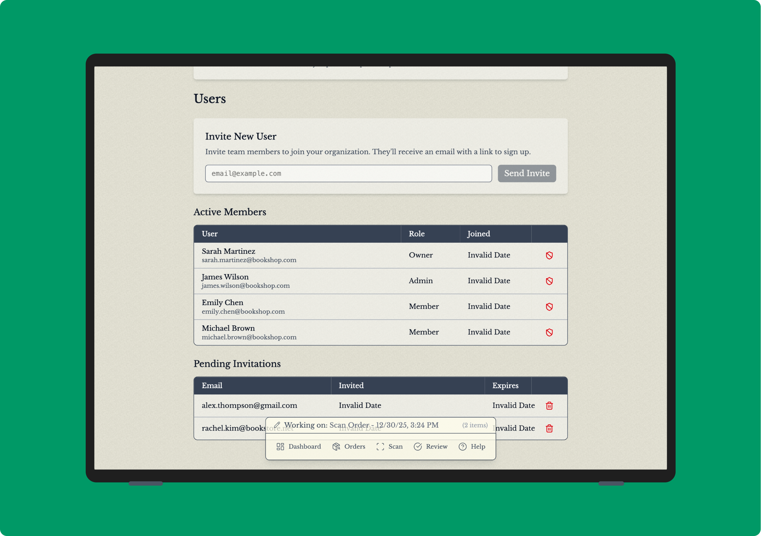 Your teammates will have access to the same inventory, scanning tools, and Square integration that you do. Perfect for stores with multiple staff members managing book inventory!